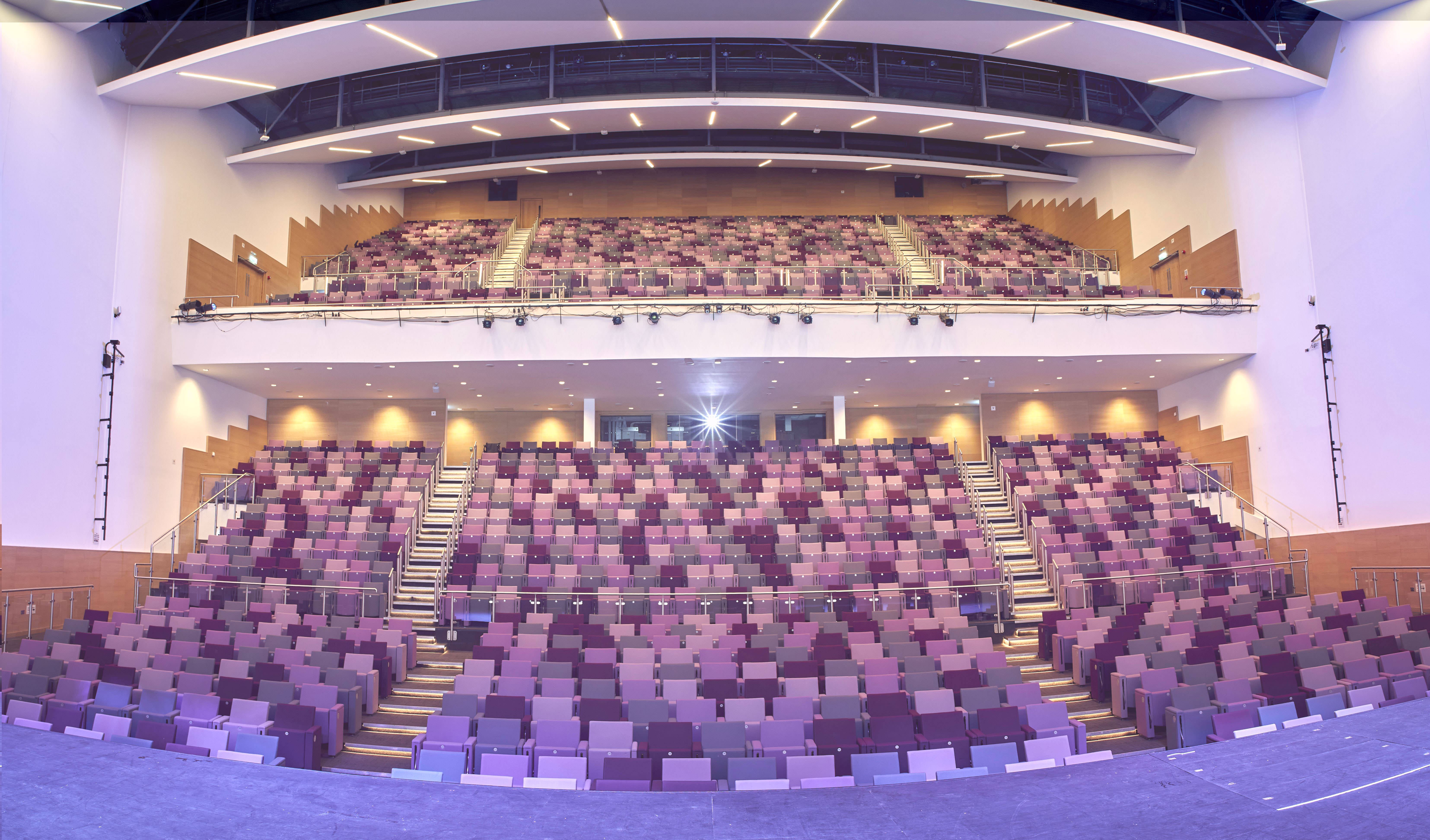 The auditorium at ICC Wales is a state-of-the-art, dynamic space designed to inspire. It features tiered, fixed theatre-style seating for 1,500 delegates, with 762 seats on the upper level and 738 on the lower level. Complementing the auditorium is the spacious 210 sqm Aspect Bar, which boasts floor-to-ceiling windows, offering a bright, open atmosphere. The venue also provides dedicated production access and loading at stage level, along with a production storage area and green rooms for added convenience.